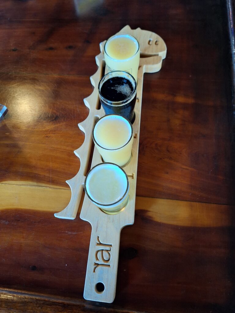 Food can be ordered from either the taproom, cocktail bar, or restaurant. The house specialty is the Chessie Burger—basically a smash burger—served in a half dozen variations. Chicken, pork, franks, and fish sandwiches are also available. Sides include fries, wings, tots, onion rings, and mac & cheese. A more extensive menu can be found across the street at The Dive Club, which specializes in seafood with a Cajun accent and offers 30 tropical cocktails, including a dozen house specialties. Mainlanders reluctant to cross the bay can find the same food and massive beer selection at RaR’s newest outpost, Chessie’s Wharf in West Annapolis, which opened in January 2024.