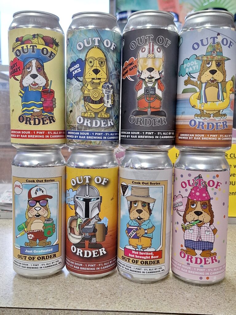 To date, 159 different Out of Order sours have been reviewed on social media. From Abooga Booga, (RaR’s house lactose sour conditioned on mango puree and apple fritters) to Yub Nub (with raspberries, French vanilla, Colombian coffee beans, cinnamon, and pastry cream), each version of Out of Order features a different variation on the series’ befuddled beagle created by in-house illustrator B.J. Wheatley. Whether malty, hoppy, sour, or sweet, the one thing that all RaR beers have in common is Wheatley’s artwork. Over the past 12 years, he has designed close to 500 labels. Enlarged versions—as well as other examples of Wheatley’s art—line the walls of the taphouse like spray-painted street art.