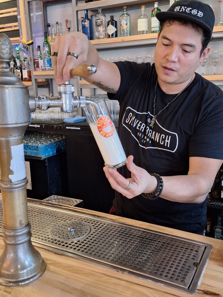 But what truly sets Silver Branch apart is the way it serves its signature GABF gold medal–winning Glass Castle Bohemian-style pilsener. Although the brewery prefers the German spelling over the Czech “pilsner,” Silver Branch spares no expense in brewing this beer as authentically as possible using osmotically adjusted, soft water that mimics the low-mineral content of Pilsen’s Radbuza River, from which the first beers in this style were brewed. The beer is made from imported malt, kilned from authentic red Moravian barley, seasoned with grassy, floral Saaz hops, and mashed in the more thorough, time-consuming process known as decoction.