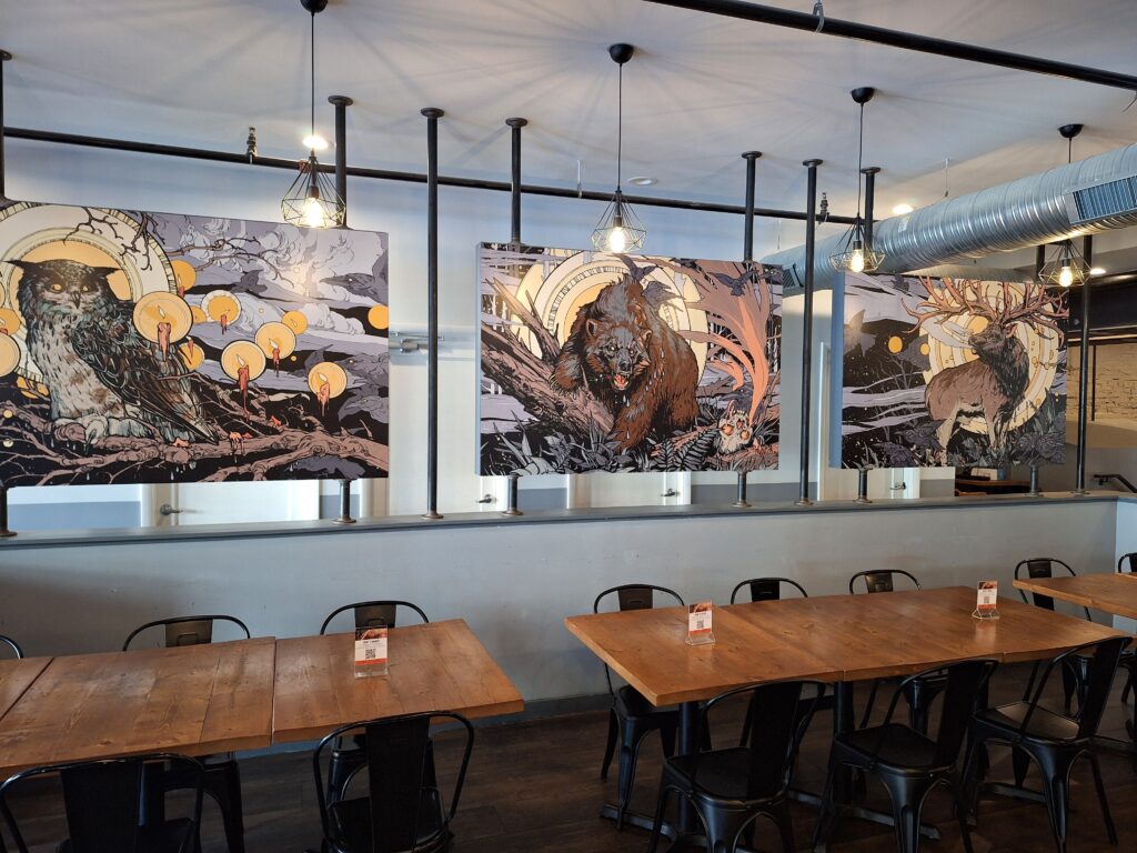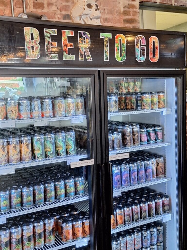 Nepenthe was fortunate to have a full year to become established before covid struck, getting their canning operation up and running in time to pivot to retail sales just as the pandemic was taking hold. Dense, intricate, and imaginative designs from Columbus, Ohio-based tattoo artist Mike Moses made Nepenthe beers jump out from retailers’ shelves. Moses’ distinctive sci-fi vision is a perfect fit for Nepenthe’s beer universe of Pyromancers, Cryptid Shapeshifters, Werewolf Deathgrips and flagship IPA Space Jellyfish.